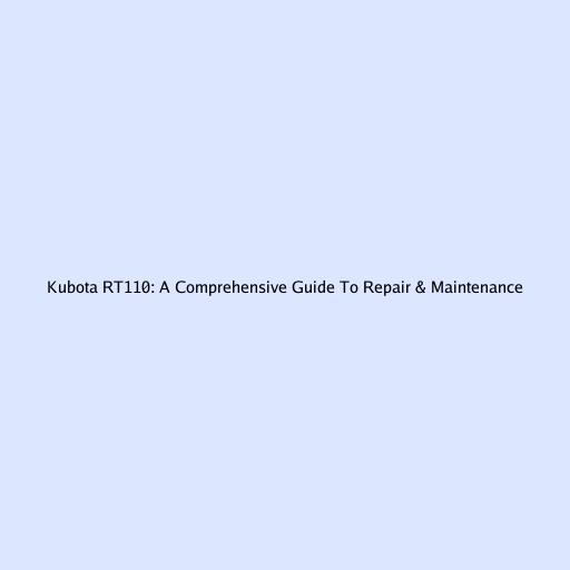 Kubota RT110: A Comprehensive Guide To Repair & Maintenance