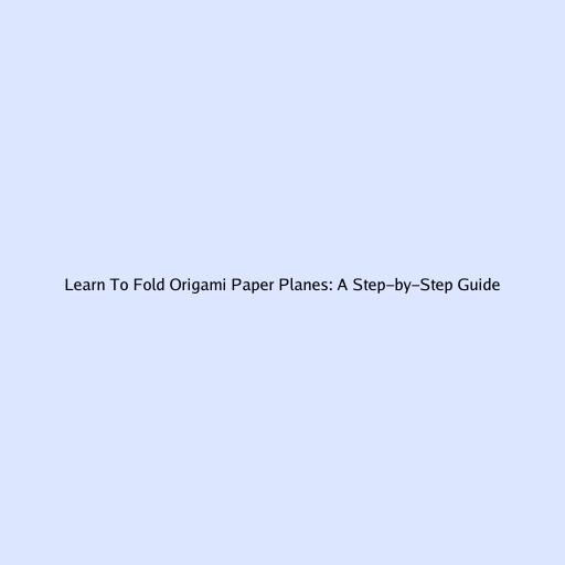 Learn to Fold Origami Paper Planes: A Step-by-Step Guide