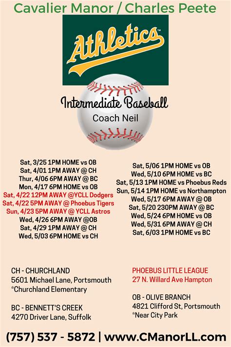 By considering these key elements, you can create a Little League schedule that is comprehensive, fair, and easy to manage. This will help ensure a smooth and enjoyable season for everyone involved.