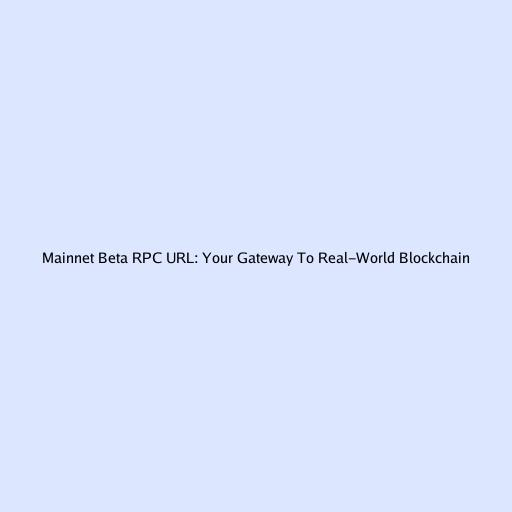 Mainnet Beta RPC URL: Your Gateway to Real-World Blockchain
