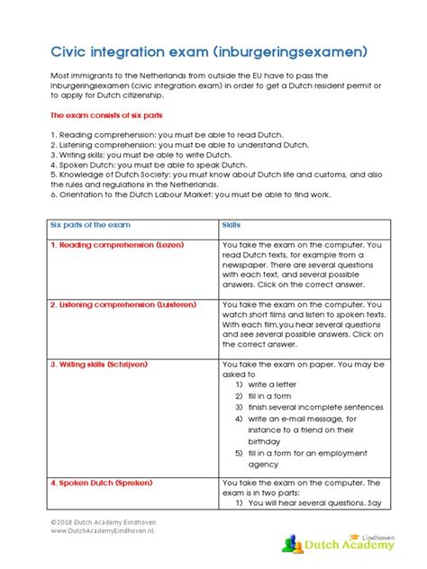 Alright guys, let’s get down to the nitty-gritty of the Dutch civic integration exam . This isn’t just one single test; it’s actually made up of several components, each designed to assess different skills. You’ll need to pass all of them to get your certificate. The main parts are: