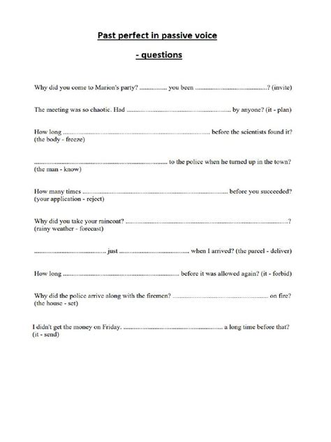 Let’s get down to the nitty-gritty of forming active and passive sentences in the past perfect. It’s like following a recipe – once you know the ingredients and the steps, you can whip up perfect sentences every time! For active voice, remember the formula: Subject + had + past participle + object (optional) . So, if you want to say “I had finished the report,” you’ve got your subject (“I”), your auxiliary verb (“had”), the past participle (“finished”), and the object (“the report”). Easy peasy, right? Now, for passive voice, the formula is: Subject + had been + past participle . This is where the object from the active sentence becomes the subject in the passive sentence. For example, the active sentence “She had written the email” becomes “The email had been written” in passive voice. Notice how the focus shifts from “she” to “the email.” Getting the hang of this transformation is key. One common challenge is figuring out when to add “by + agent” in passive sentences. This is only necessary if you want to specify who performed the action. If it’s obvious or irrelevant, you can leave it out. For instance, “The house had been cleaned” is perfectly fine without saying “by someone.” Practice is your best friend here. Try taking a bunch of active sentences and converting them to passive, and vice versa. Pay attention to how the meaning and emphasis change. With a bit of practice, you’ll be flipping between active and passive like a grammar ninja!