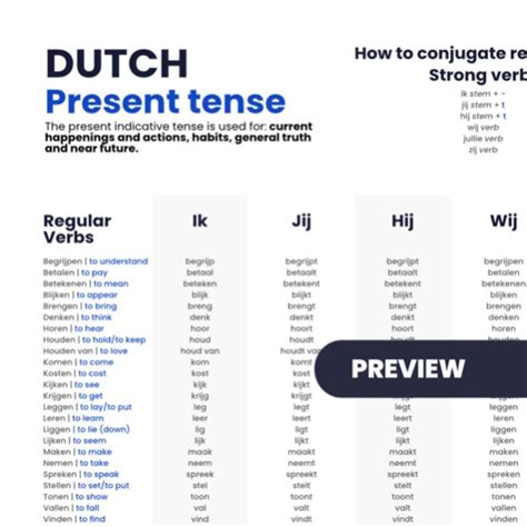Alright, let’s kick things off with the present tense ! In Dutch, the present tense, also known as de tegenwoordige tijd , is used to describe actions happening right now, habitual actions, or general truths. Think of it as the go-to tense for everyday conversations. It’s the foundation upon which all other tenses are built, so mastering it is super crucial. The present tense in Dutch is relatively straightforward to learn, which is a major win for us! One of the great things about the present tense is its simplicity. It’s used for actions that are happening at this very moment, like “Ik lees een boek” (I am reading a book). It’s also used for things that happen regularly. For example, “Ik ga elke dag naar school” (I go to school every day). And finally, it’s used to state general facts. For example, “De zon schijnt” (The sun shines). Understanding these uses will help you a lot in using the present tense correctly in Dutch. When forming the present tense, the basic rule is to take the infinitive form of the verb (the ‘to’ form) and strip off the ‘-en’ ending. Then, you add different endings depending on the subject pronoun. For instance, with the verb “leren” (to learn), the conjugation would look something like this: