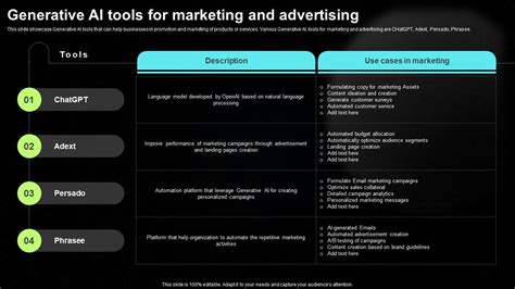 For businesses , the implications are profound. Generative AI can automate many content-related tasks, freeing up human employees to focus on more strategic and creative endeavors. This can lead to significant cost savings and increased productivity. Furthermore, these tools can help businesses stay ahead of the curve by quickly adapting to changing market trends and customer preferences. Imagine being able to generate customized product descriptions for thousands of items in your online store with just a few clicks, or creating targeted advertising campaigns that resonate with specific demographics. Generative AI makes all of this possible, empowering businesses to be more agile, efficient, and competitive. As we move forward, understanding and leveraging these tools will be crucial for any organization looking to thrive in the digital age. So, buckle up and get ready to explore the exciting world of generative AI!