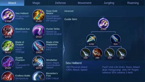 Before we start predicting the future, let’s make sure we have a solid understanding of the present. Currently, MLBB items are divided into several categories : Attack, Magic, Defense, Movement, and Jungle . Each category offers a range of items with unique stats and passive abilities. These items are crucial for customizing your hero’s build and adapting to different game situations. For example, a marksman might prioritize Attack items early on to maximize damage output, while a tank might focus on Defense items to withstand enemy attacks. Mages often rely on Magic items to amplify their spell power, and assassins need Movement items to quickly engage and disengage from fights.
