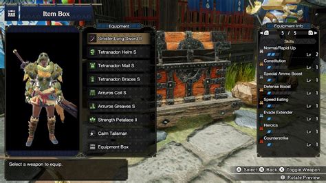 • Armor: Aim for a mix of high-level skills, including Artillery, Guard, Guard Up, Offensive Guard, and Attack Boost. Utilize the best available armor sets. Try to go for the best available armor. You’ll want to max out the damage skills and try to get a good balance between offensive and defensive skills.