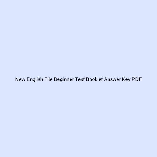 New English File Beginner Test Booklet Answer Key PDF: Your Ultimate Guide