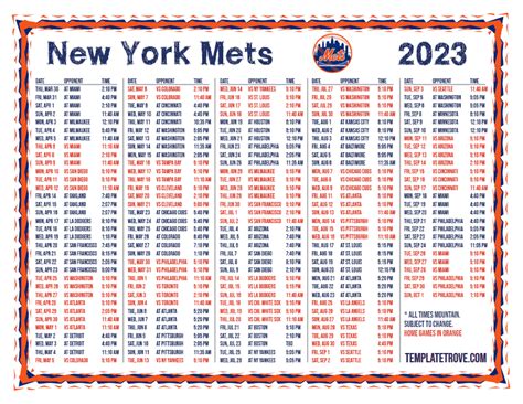 NY Mets Schedule 2023: Printable Version for True Fans