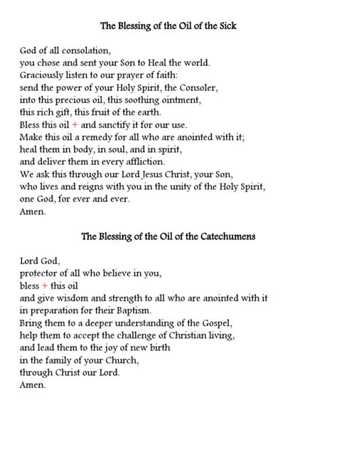 The blessing of the Oil of Catechumens is a really special event, usually happening during Holy Week. This is the week leading up to Easter, and it’s a time when the Church reflects on the final days of Jesus’ life. The blessing typically takes place at the Chrism Mass, which is celebrated by the bishop of each diocese. During this Mass, the bishop blesses not only the Oil of Catechumens but also the Sacred Chrism and the Oil of the Sick. It’s a pretty big deal because these oils are used in sacraments throughout the year. The blessing of the Oil of Catechumens involves specific prayers and rituals. The bishop asks God to sanctify the oil, making it a source of strength and protection for those who will be anointed with it. He prays that those who receive the oil will be freed from the power of evil and strengthened in their faith. The prayers used during the blessing often emphasize the symbolism of the oil, highlighting its ability to cleanse, strengthen, and protect. The bishop’s role in blessing the Oil of Catechumens is significant because he is the chief shepherd of the diocese. His blessing signifies the Church’s official endorsement and support of the use of this oil in the sacraments. It’s a way of saying, “This oil has been set apart for a sacred purpose, and we trust that God will work through it to bring grace to those who receive it.” The blessed oil is then distributed to parishes throughout the diocese, where it will be used in baptisms and other sacramental rites. This distribution ensures that every parish has access to these important sacramental tools. The blessing of the Oil of Catechumens isn’t just a one-time event; it’s a reminder of the ongoing presence of God in the life of the Church. It’s a symbol of the Church’s commitment to providing spiritual nourishment and support to its members. The blessing transforms the ordinary oil into something extraordinary, a tangible sign of God’s grace and love. It’s a powerful reminder of the importance of the sacraments in the Catholic faith.