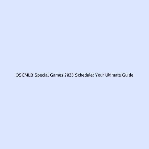 OSCMLB Special Games 2025 Schedule: Your Ultimate Guide