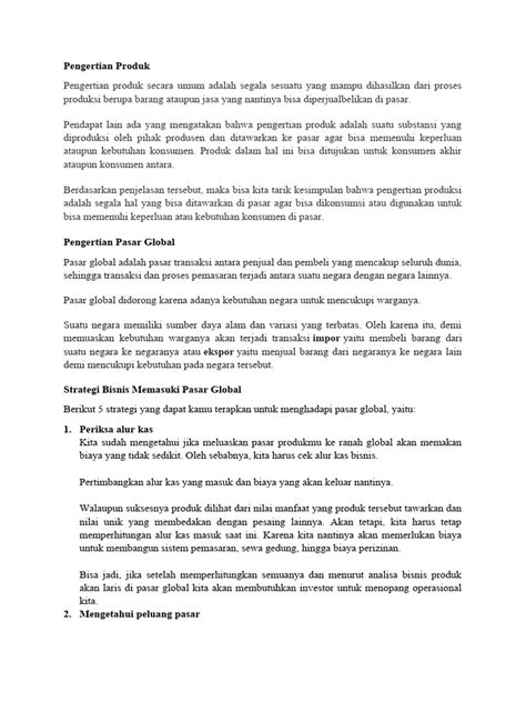 Guys, setelah kita paham apa itu pasar global , sekarang saatnya kita bahas kenapa sih pasar global ini penting dan apa aja manfaat pasar global buat kita semua. Manfaatnya itu banyak banget, lho, dan seringkali kita nggak sadar kalau kita udah merasakan dampaknya setiap hari. Salah satu manfaat paling nyata adalah peningkatan pilihan produk dan jasa . Coba deh kamu jalan-jalan ke supermarket atau buka e-commerce . Kamu bakal nemuin produk dari berbagai merek dan negara, kan? Mulai dari makanan khas Italia, elektronik dari Korea, sampai pakaian dari Bangladesh. Keberagaman ini bikin kita punya banyak pilihan sesuai selera dan kantong. Plus , persaingan antarprodusen dari berbagai negara ini juga mendorong mereka untuk terus meningkatkan kualitas produk dan berinovasi. Kalau produknya biasa aja, ya jelas kalah saing sama produk dari negara lain yang lebih keren atau lebih bagus. Selain itu, pasar global juga bisa bikin harga barang jadi lebih terjangkau. Gimana caranya? Karena perusahaan bisa cari sumber bahan baku paling murah atau melakukan produksi di negara dengan biaya tenaga kerja yang lebih rendah. Efisiensi ini akhirnya bisa diteruskan ke konsumen dalam bentuk harga yang lebih bersaing. Nggak cuma buat konsumen, pasar global juga punya manfaat besar buat negara dan perusahaan. Bagi negara, ini bisa jadi peluang ekspor yang memperbesar pendapatan negara dan menciptakan lapangan kerja. Perusahaan juga bisa memperluas pasar mereka, nggak cuma terbatas di dalam negeri, tapi bisa menjangkau miliaran konsumen di seluruh dunia. Ini bisa meningkatkan skala ekonomi dan keuntungan perusahaan. Terus, transfer teknologi dan pengetahuan juga jadi lebih cepat. Perusahaan dari negara maju bisa berinvestasi di negara berkembang, membawa serta teknologi dan keahlian baru yang bisa diadopsi oleh tenaga kerja lokal. Ini penting banget buat pembangunan ekonomi suatu negara. Intinya, pasar global ini kayak pisau bermata dua. Di satu sisi, ia membuka peluang yang luar biasa untuk pertumbuhan, inovasi, dan kenyamanan konsumen. Tapi, kita juga harus siap menghadapi tantangannya, seperti persaingan yang semakin ketat dan ketergantungan ekonomi antarnegara. Tapi, secara keseluruhan, manfaatnya jauh lebih besar, guys, kalau kita bisa memanfaatkannya dengan bijak.