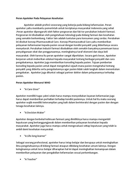 Nah, sekarang kita ngomongin peran apoteker itu sendiri dalam sistem kesehatan kita, guys. Seringkali orang cuma ngelihat apoteker itu tugasnya cuma ngebalikin resep, ngasih obat, terus ngitung kembalian. Eits , jangan salah! Tugas apoteker itu jauh lebih mulia dan kompleks dari itu. Para apoteker ini adalah tenaga kesehatan profesional yang punya peran sentral dalam penggunaan obat yang rasional dan aman . Mereka itu kayak drug expert atau ahli obat, yang paham banget seluk-beluk obat, mulai dari cara kerjanya, dosis yang tepat, efek sampingnya, sampai interaksinya dengan obat lain. Peran ini krusial banget, lho, terutama di era BPJS Kesehatan sekarang ini, di mana akses terhadap obat jadi lebih luas. Tanpa apoteker yang kompeten, penggunaan obat bisa jadi nggak tepat sasaran, yang ujung-ujungnya bisa membahayakan pasien dan membebani sistem kesehatan.