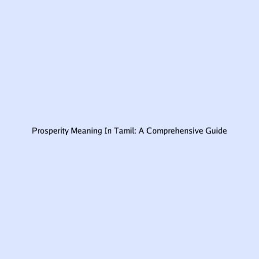 Prosperity Meaning In Tamil: A Comprehensive Guide