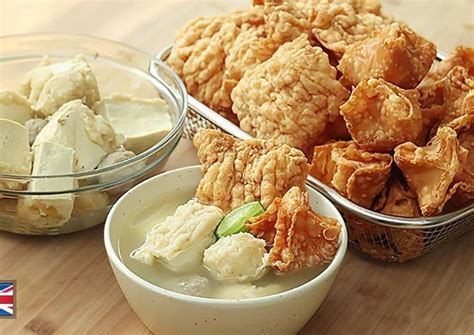• Tahu pong/tahu sumedang: Belah dua atau potong segitiga, lalu kerok sedikit bagian tengahnya untuk diisi adonan bakso.