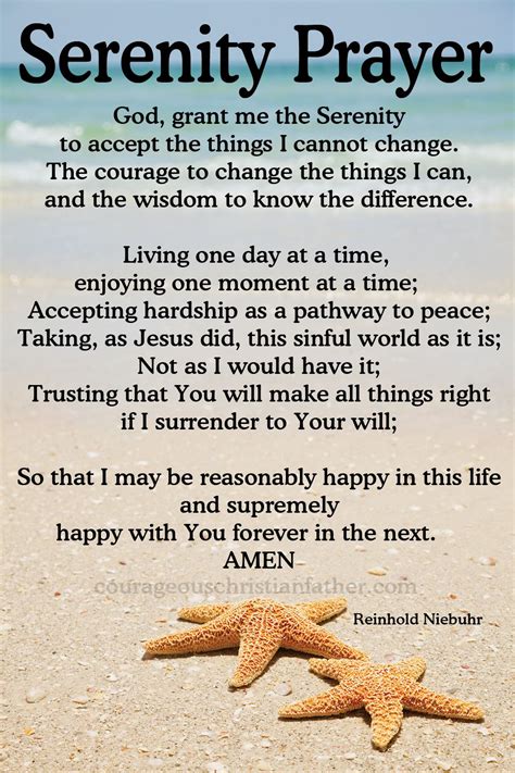 The beauty of the Serenity Prayer lies in its universality. It transcends religious boundaries, making it accessible to anyone, regardless of their beliefs. It’s a testament to the shared human experience of facing adversity and seeking inner peace. No matter what your background is, the Serenity Prayer is a powerful tool that can help you navigate life’s challenges. It’s about finding acceptance, courage, and wisdom. In a world full of chaos, this prayer offers a sense of calm and clarity. The Serenity Prayer serves as a daily reminder to focus on what you can control and let go of what you cannot. And trust me, it’s a game-changer! Understanding the essence of the Serenity Prayer is the first step towards incorporating it into your life. It’s about realizing that we’re not always in control, but we always have the power to choose our response. The key takeaway is to embrace the Serenity Prayer ’s core principles: acceptance, courage, and wisdom, they are the cornerstones of a peaceful and fulfilling life. So, embrace the principles, and allow the serenity prayer to guide you towards a more peaceful existence.