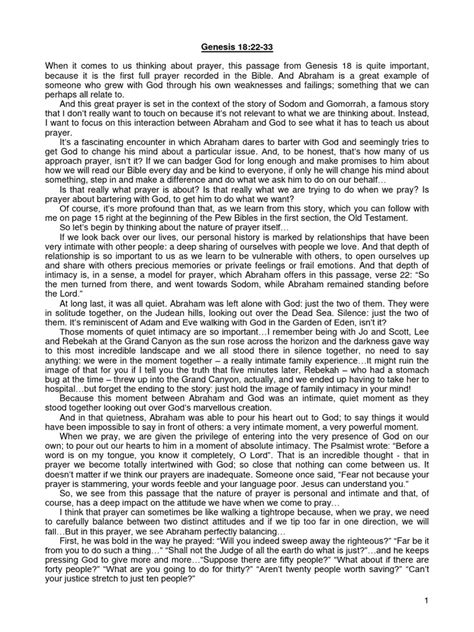 Hey guys! This week’s sermon dives deep into Genesis 18:22-33, a super interesting passage where Abraham is chatting with God. It’s a classic example of faith, intercession, and just how much God cares about justice and righteousness. We’re going to break down this powerful story and see what lessons we can learn about our own relationship with God and how we approach prayer and faith in our lives. This passage gives us a window into the character of God, His mercy, and His desire for humanity to walk in His ways. Abraham’s bold yet respectful conversation with God sets the stage for a discussion about faith, intercession, and the core values that God upholds. The story shows us that even in the face of judgment, there is always room for hope, pleading, and the possibility of reconciliation.