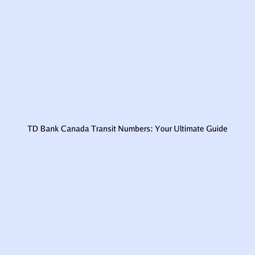 TD Bank Canada Transit Numbers: Your Ultimate Guide
