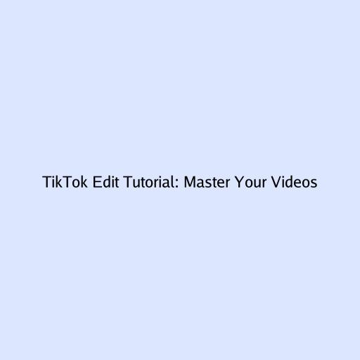 TikTok Edit Tutorial: Master Your Videos