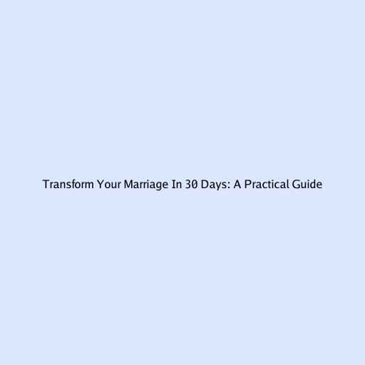 Transform Your Marriage in 30 Days: A Practical Guide