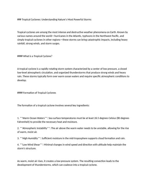 Hey guys! Today, we’re diving deep into the fascinating and sometimes terrifying world of tropical cyclones . You’ve probably heard of them – hurricanes, typhoons, cyclones – these are all just different names for the same, incredibly powerful weather phenomenon. But what exactly is a tropical cyclone, and how do these massive swirling systems form and wreak havoc? We’re going to break it all down, from the initial spark of formation to the devastating impact they can have on coastal communities. Get ready to understand the science behind these giants of the atmosphere, and why they are such a critical part of our planet’s weather systems. We’ll explore the conditions that need to be just right for them to brew, the anatomy of a cyclone, and the different categories used to measure their intensity. Understanding tropical cyclones isn’t just about satisfying curiosity; it’s about preparedness, safety, and appreciating the immense forces of nature that shape our world. So, buckle up, because we’re about to embark on a journey into the heart of a storm!