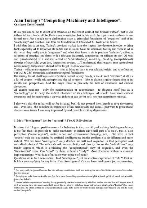 In conclusion, Alan Turing’s “Computing Machinery and Intelligence” is a seminal work that has profoundly shaped the field of artificial intelligence. His introduction of the Turing Test provided a practical and influential benchmark for assessing machine intelligence. His meticulous anticipation and addressing of potential objections demonstrated his foresight and deep understanding of the challenges involved. His insights into machine learning and the future of AI continue to inspire researchers and drive innovation. Turing’s paper is not just a historical artifact; it’s a living document that continues to provoke thought, stimulate debate, and guide the pursuit of intelligent machines. It’s a must-read for anyone interested in understanding the history, present, and future of AI. It’s like a time capsule from the mind of a genius, offering us a glimpse into the possibilities and challenges of creating machines that can think. So, if you’re looking to delve into the fascinating world of AI, start with Turing’s paper. It’s a journey you won’t regret!
