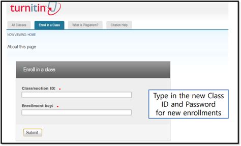 5. Submit and Confirm : After entering both the Class ID and Class Key, click the ‘Submit’, ‘Enroll’, or ‘Join’ button. If the information is correct, you should be successfully enrolled in the class. You’ll usually see a confirmation message, and the class will appear in your list of courses on your Turnitin dashboard.