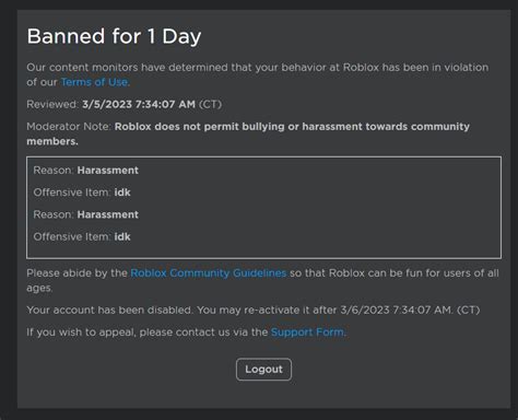• Understand the Ban is Final : In some cases, a permanent ban is truly final. Roblox has the right to enforce its rules and policies as it sees fit. If your appeal is denied and the ban remains in place, accept the decision and move on. Repeatedly attempting to circumvent a permanent ban can lead to further penalties.