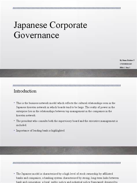 Hey guys! Today, we’re diving deep into the fascinating world of Japanese corporate governance . Now, you might be thinking, “Corporate governance? Isn’t that super dry and technical?” Well, while it can be, understanding how companies are run, especially in a unique market like Japan, is incredibly important. It affects everything from how decisions are made, how accountability works, and ultimately, how successful a company can be. So, let’s break down this distinctive model and see what makes it tick. We’ll explore its historical roots, its key players, and how it’s evolving in the modern business landscape. Get ready to get your mind around some pretty cool concepts!