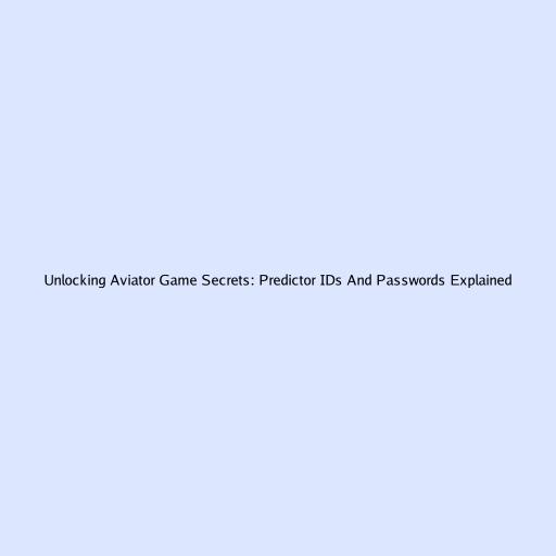 Unlocking Aviator Game Secrets: Predictor IDs and Passwords Explained