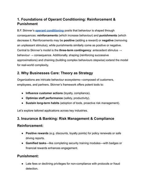 • Workplace : Companies use rewards and incentives to motivate employees. This could be anything from bonuses to promotions. Understanding schedules of reinforcement is important here too; for example, rewarding employees for achieving specific goals (fixed ratio) or providing regular feedback (fixed interval).