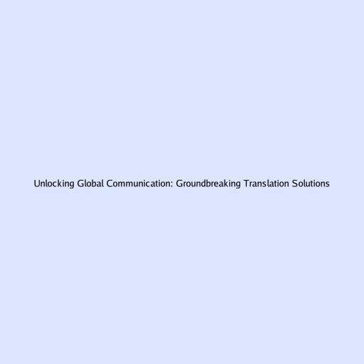 Unlocking Global Communication: Groundbreaking Translation Solutions