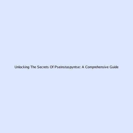 Unlocking The Secrets Of Pseinstaspyntse: A Comprehensive Guide