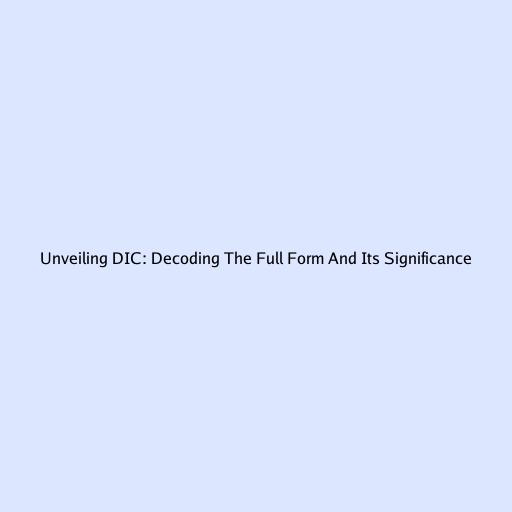 Unveiling DIC: Decoding The Full Form And Its Significance
