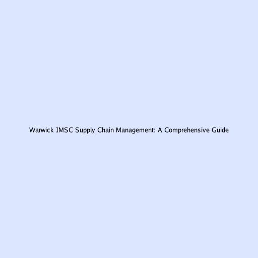 Warwick IMSC Supply Chain Management: A Comprehensive Guide