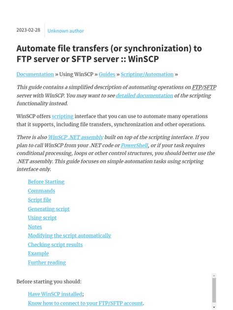 • Scripting and Automation: For advanced users, WinSCP offers scripting capabilities that allow you to automate file transfer tasks. This can be a huge time-saver when you need to perform repetitive tasks on a regular basis.